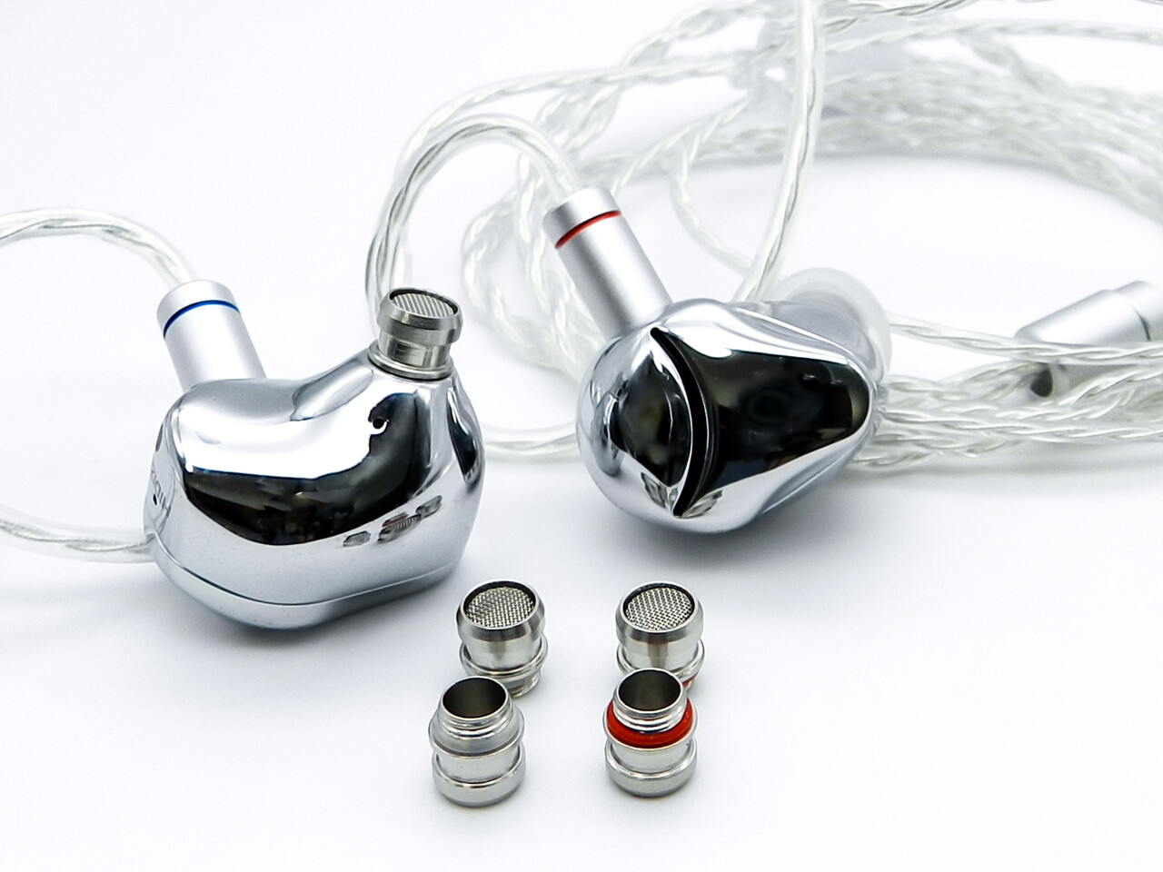 また「HIDIZS MK10 ArcSonics」は100ドル以下のモデルながら3種類のノズルフィルターを備えています。標準では「低域」強調の黒リングが装着済みで、他に「高域」強調の白リング、「ボーカル」タイプの赤リングのフィルターが同梱されます。どのフィルターもハーマンターゲットカーブ(H-2019)に準拠したサウンドデザインで調整され、中高域~高域に変化を与えます。