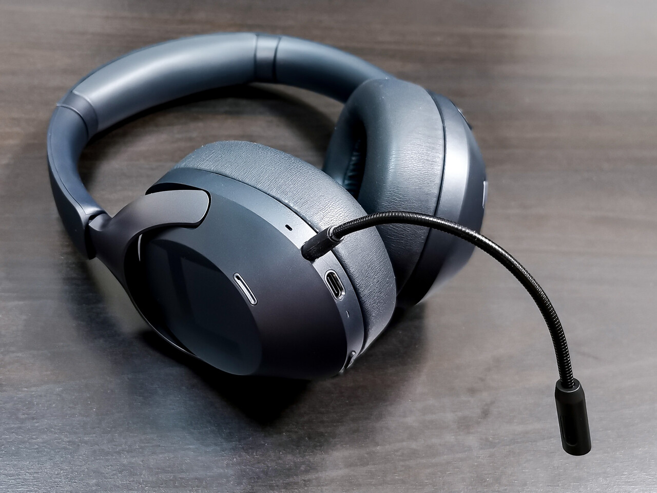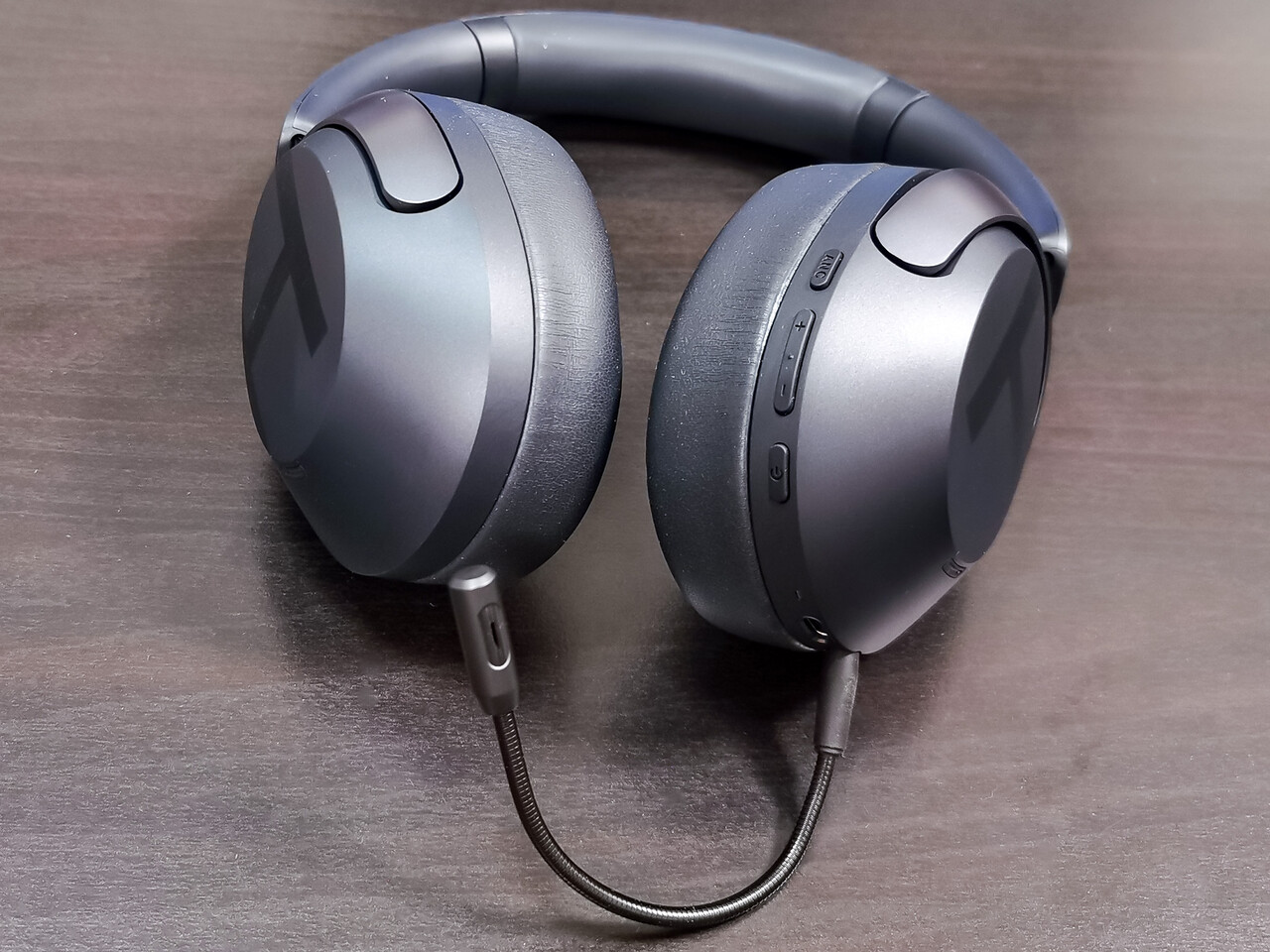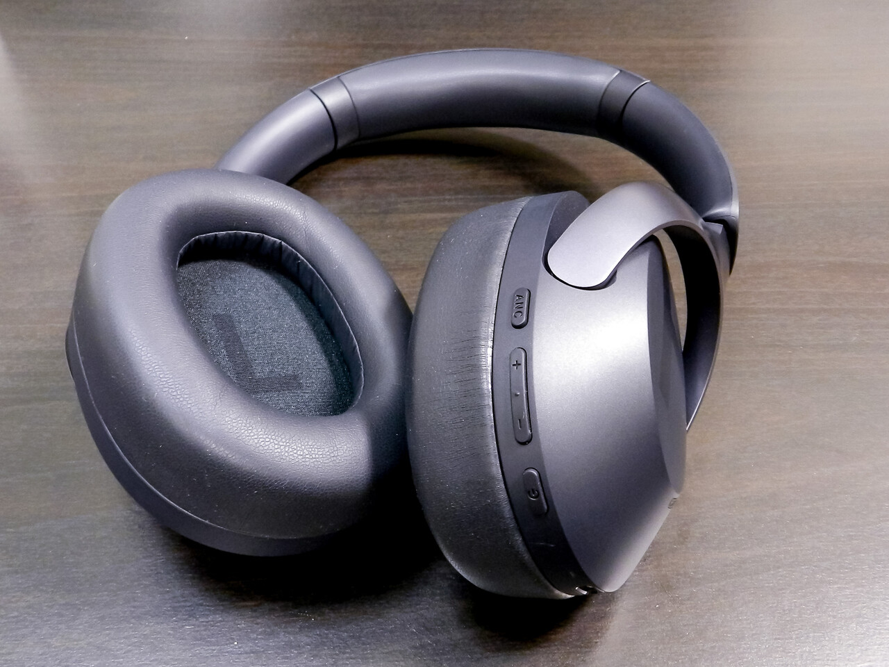 本体の右側下部には電源ボタンと+/-ボタン、「ANC」ボタンと、デジタル接続/充電用USB Type-Cポートとマイク接続用ポートが配置されます。またイヤーカップ上部がタッチセンサー機能が割り当てられています。