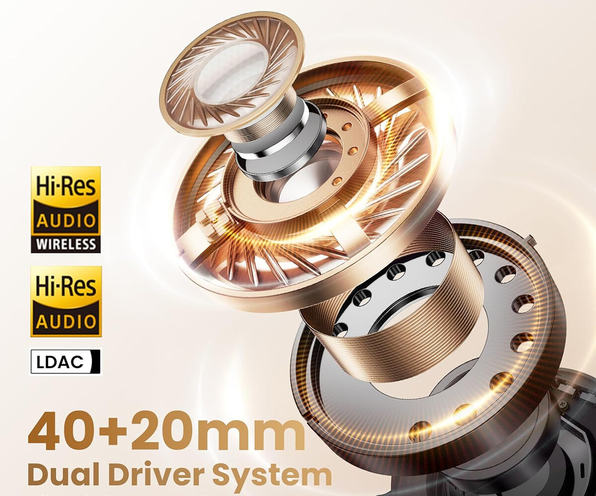 「HAYLOU S40」はBluetooth 6.0に対応し、ドライバーには40mm+20mmの同軸デュアルダイナミックドライバーシステムを採用。LDACコーデック対応、最大-52dBのスマートANC機能、没入感あふれる360°空間オーディオ、最大90時間のバッテリー稼働時間に対応した高性能ヘッドホンです。