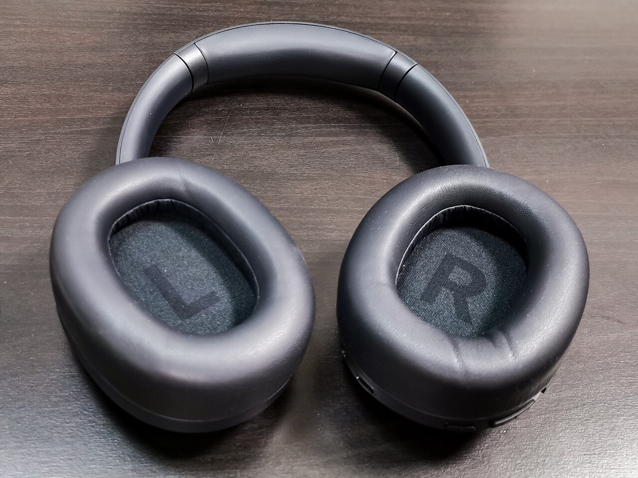 本体は樹脂製のシンプルな形状で楕円形のイヤーカップを中心にすっきりとまとまった洗練されたデザインですね。イヤーパッドは低反発クッション素材を採用しています。側圧は強めですが、柔らかいフィット感でしっかり耳を覆い、眼鏡着用でも長時間のリスニングでも痛くならない印象の装着感ですね。
