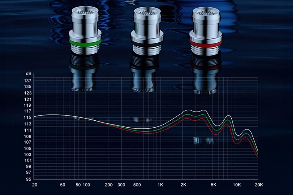 さらに「TRN WhaleShark」は3つの交換可能なチューニングノズルが装備されています。ノズルフィルターは標準装着されている「Reference」(グリーンリング)、「Transparent」(ブラックリング)、「Atmospheric」(レッドリング)の3種類でそれぞれ独自のチューニング効果を提供します。