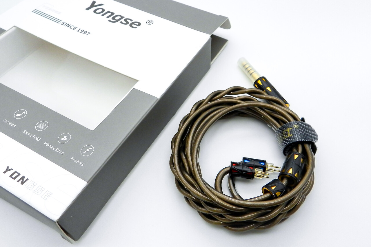 こんにちは。今回は 「YONGSE Orca」です。リッツ構造の高品質な古河電工製OFC(無酸素銅)線を使用し、グラフェンシールドによる同軸線構造を採用した2芯タイプのケーブルです。ピュアな信号伝送を実現しつつ、適度な温かみと低域の厚みによる臨場感を向上させる50ドル級のイヤホンアップグレードケーブルです。