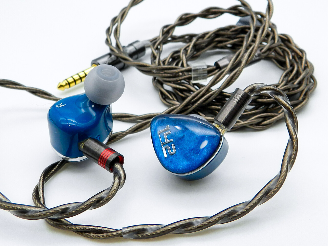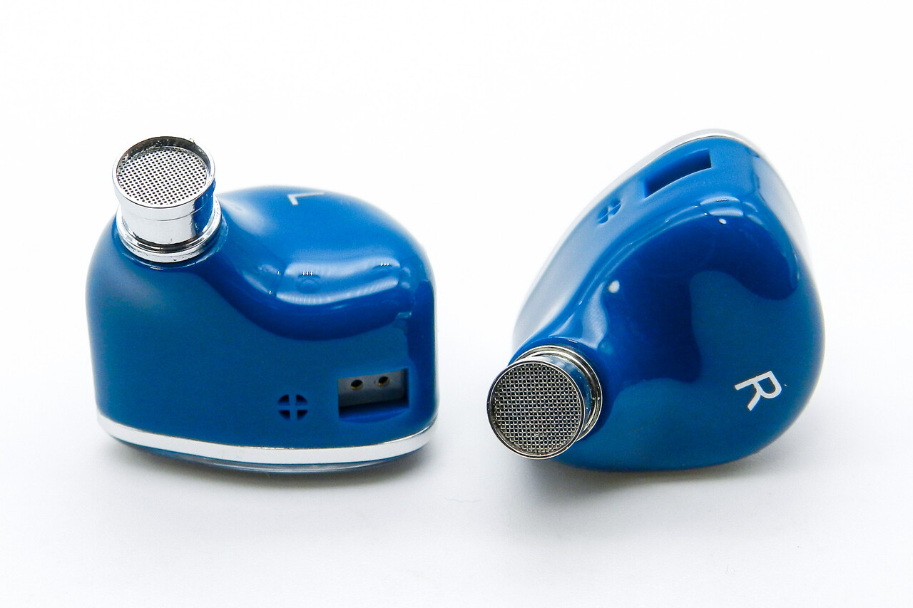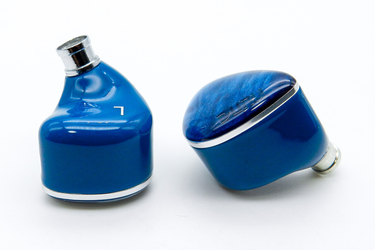 「DUNU DN142」の本体は比較的コンパクトな3Dプリントによるレジン製でステムノズルは金属製。ブルーの本体と光沢のあるフェイスプレートびシルバーメタリックの縁取りがクールな印象と豪華さを演出しています。シェル形状およびサイズは「DN242」を踏襲しています。
