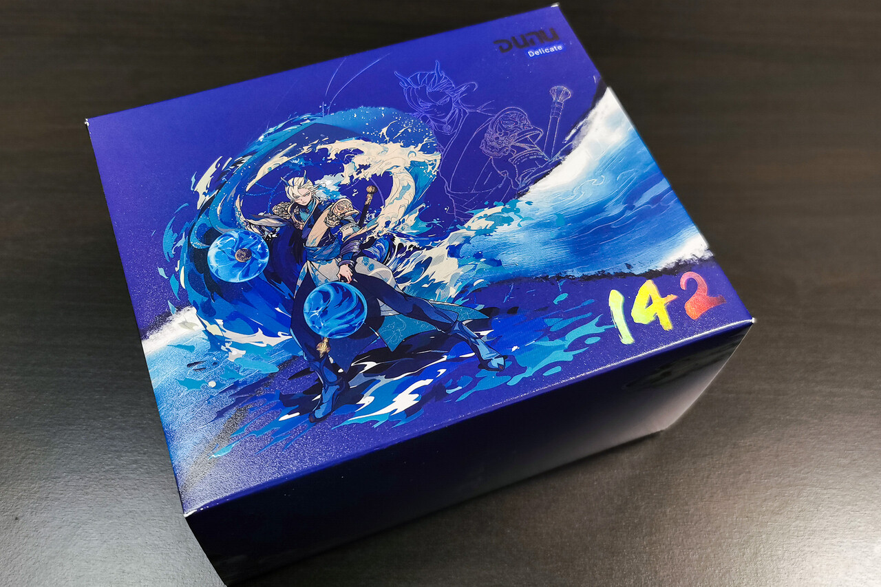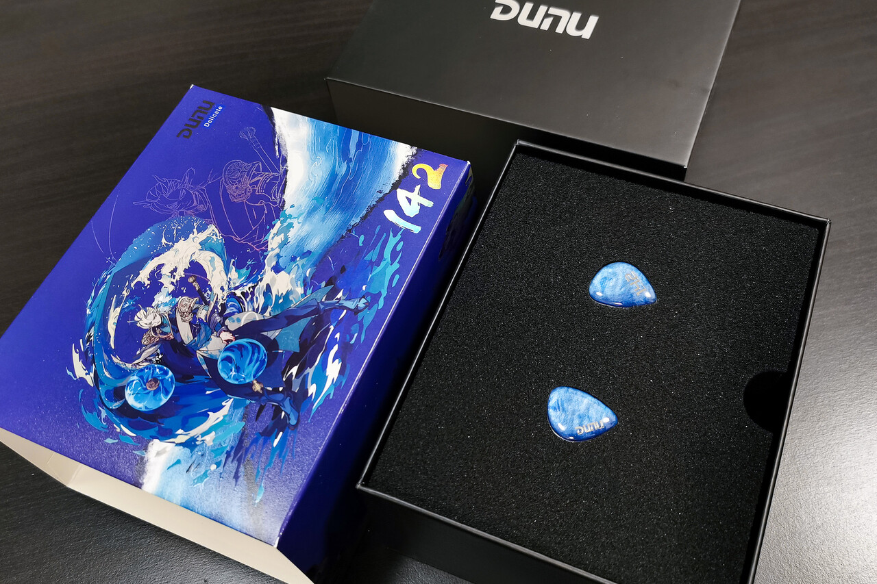 「DUNU DN142」のパッケージは本体カラーに合わせて印象的な青系統のイラストパッケージ。イラストも「DN242」と対照的な感じになっていますね(^^;)。