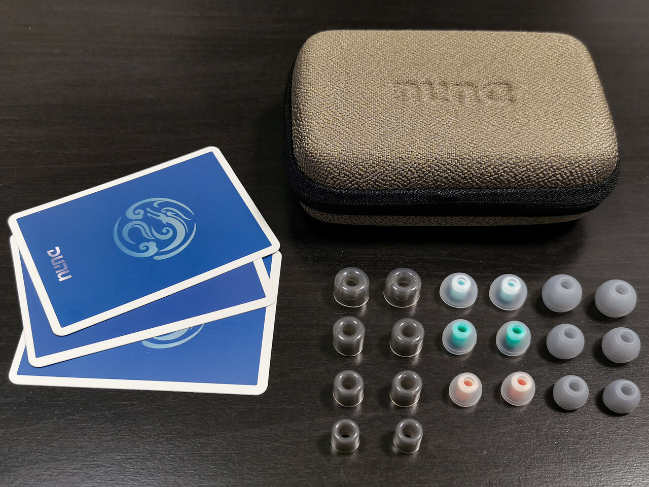 イヤーピースは通常のホワイトの「Balanced」タイプ(S/M/Lサイズ)のほか、DUNUオリジナルの「DUNU S&S イヤーチップ」が4サイズ、「DUNU Candy イヤーチップ」が3サイズ付属します。写真は通常イヤーピースで撮影していますが、私の場合は最終的にS&Sイヤーピースを組み合わせました。