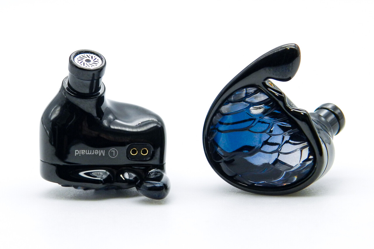 「TRN Mermaid」は、TRNの「オーシャンズシリーズ」の新モデルで、1DD+1BA+2Planarのトライブリッド構成を採用。「深海の神秘的なメロディーを探求する」というコンセプトによるユニークなシェルデザインを採用した200ドル級のミドルグレードモデルです。フェイスデザインには半透明の彫刻的なデザインときらめく鱗の質感を表現しており、2種類のカラーバリエーションで異なる雰囲気と視覚的な特徴を表現しています。