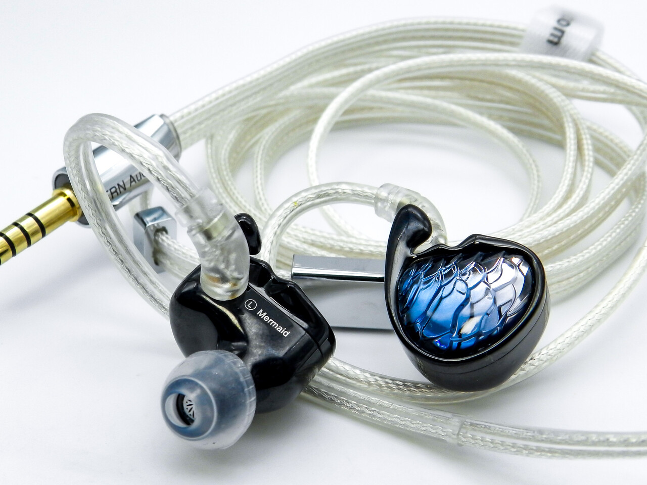こんにちは。今回は「TRN Mermaid」です。TRNによる「オーシャンズシリーズ」で200ドル級のミドルグレード製品で、ドライバーにはガラスドームを採用した複合振動板 10mm ダイナミックドライバー、Knowles製BA、そして2基の6mm 平面磁界ドライバーを採用した1DD+1BA+2Planar構成のモデルです。「深海の神秘的なメロディーを探求する」というコンセプトのもと、ユニークなシェルデザインと同時に成熟したTRNの音作りが楽しめる非常に質の高いリスニングイヤホンです。