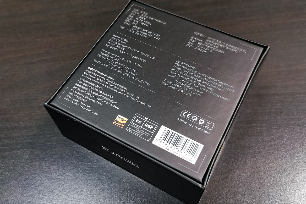 「DUNU TITAN X」のパッケージは製品ロゴをデザインしたシンプルなデザイン。